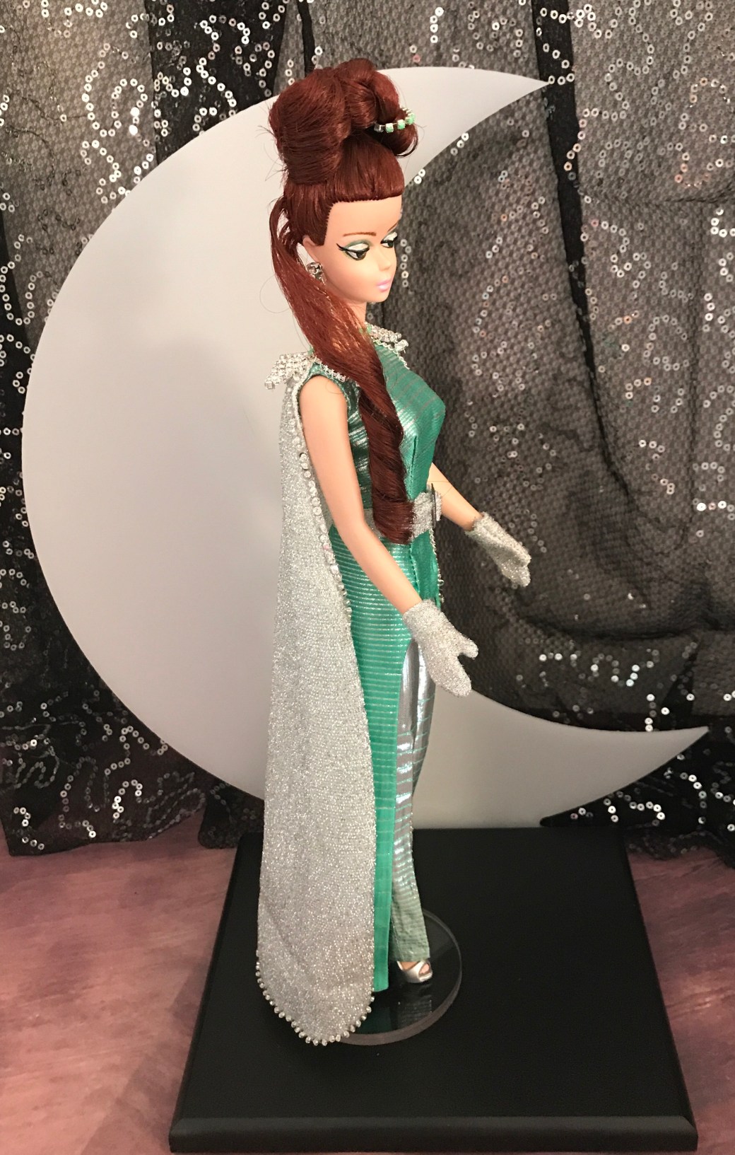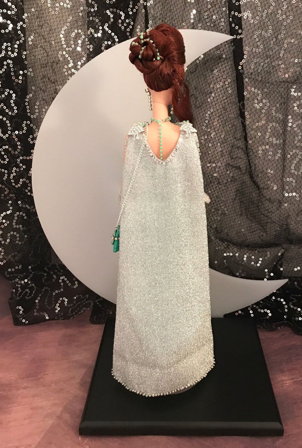She comes with her OOAK wand, crescent moon display stand (glows in the dark) and Certificate of Authenticity.