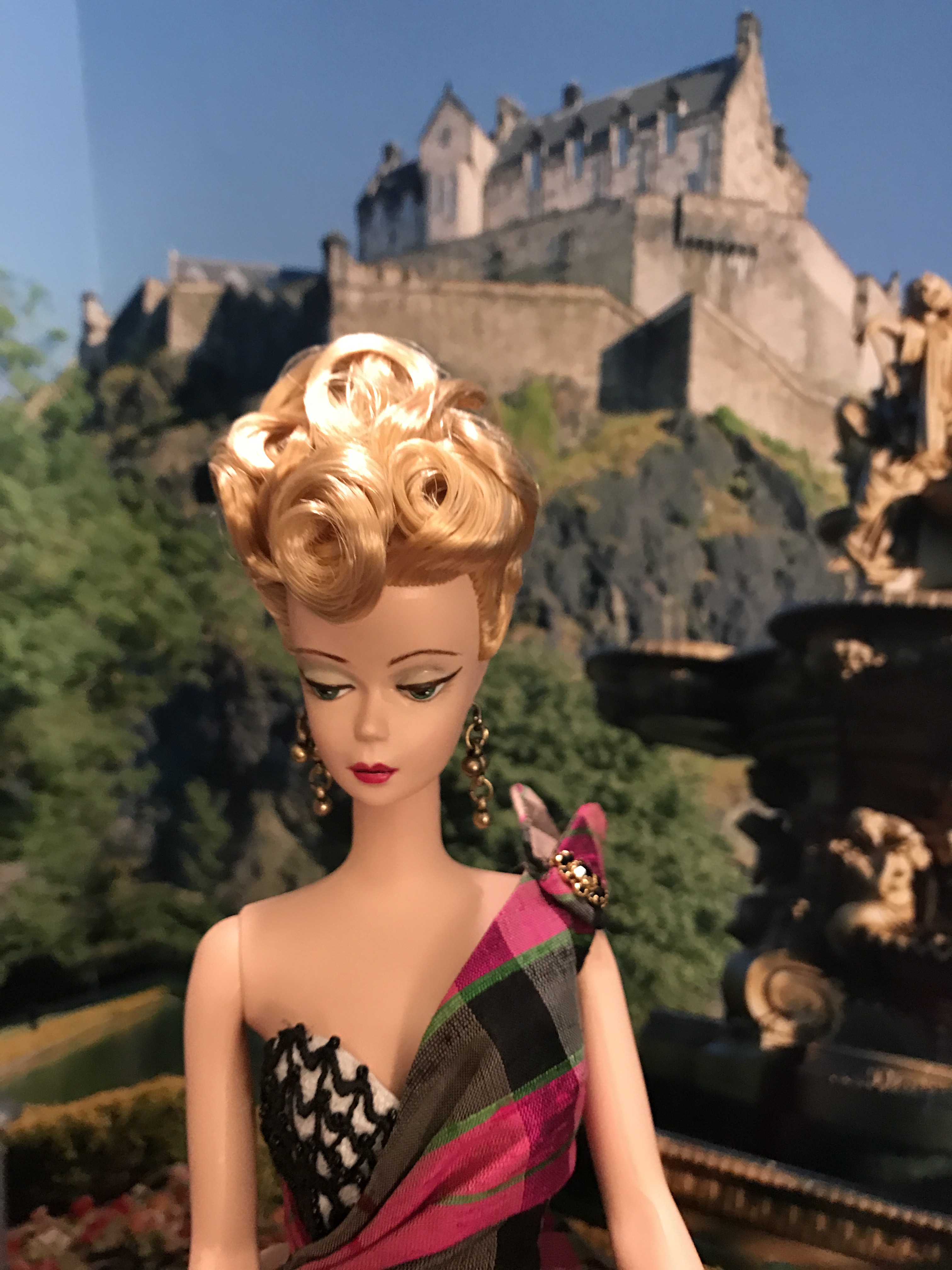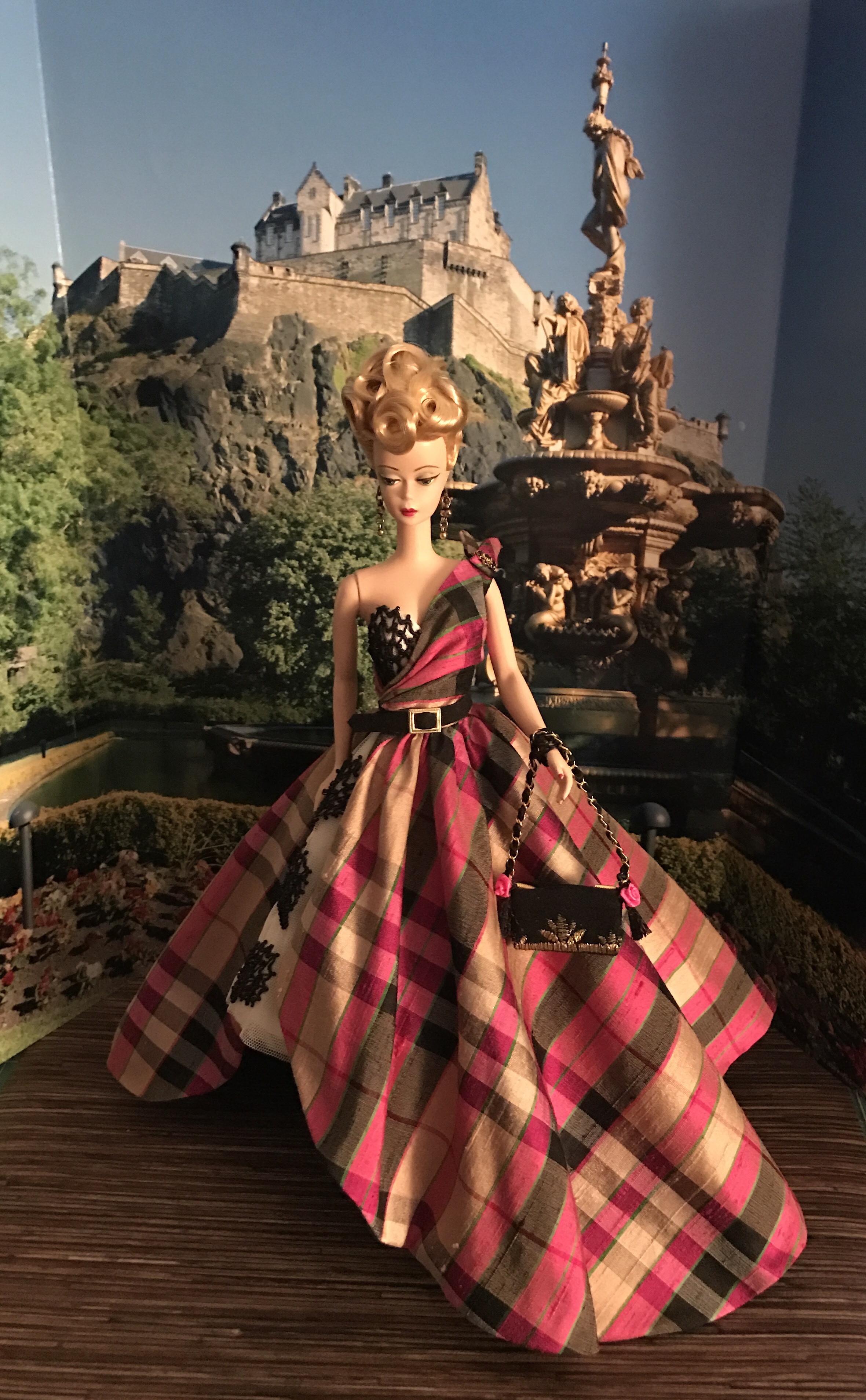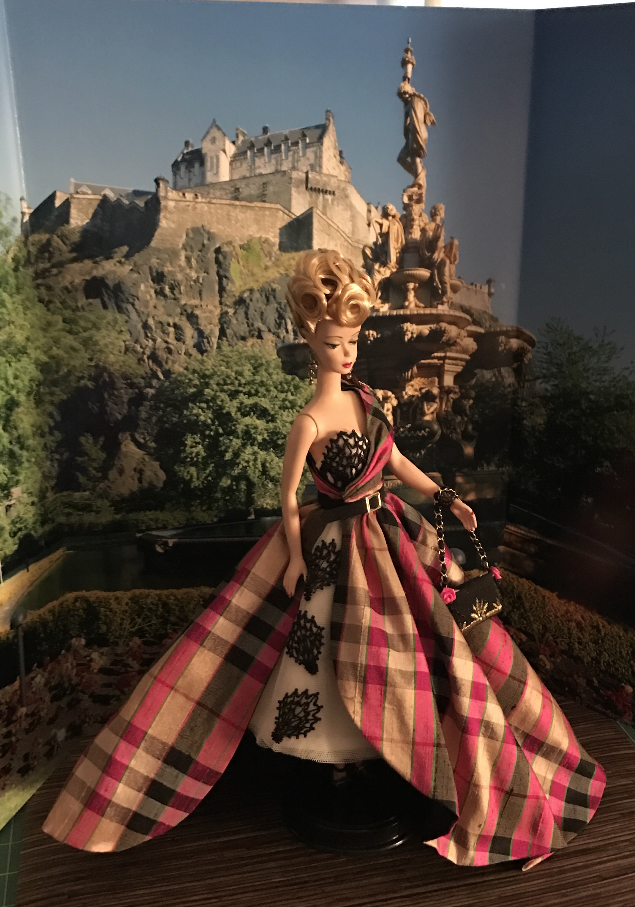Here are a few pics of “Fiona” with backdrop pic of The Castle taken from Princess Street Gardens, Edinburgh, Scotland UK. Title of her silk plaid is also Edinburgh so it just had to be … sending her and my best wishes for another successful event that benefits such worthwhile causes! Thank you GAW for all you do! ๐